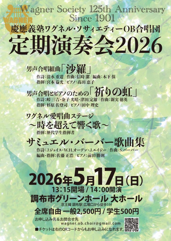 2026年5月17日 慶應義塾ワグネル・ソサィエティーOB合唱団 定期演奏会2026 調布市グリーンホール 大ホール